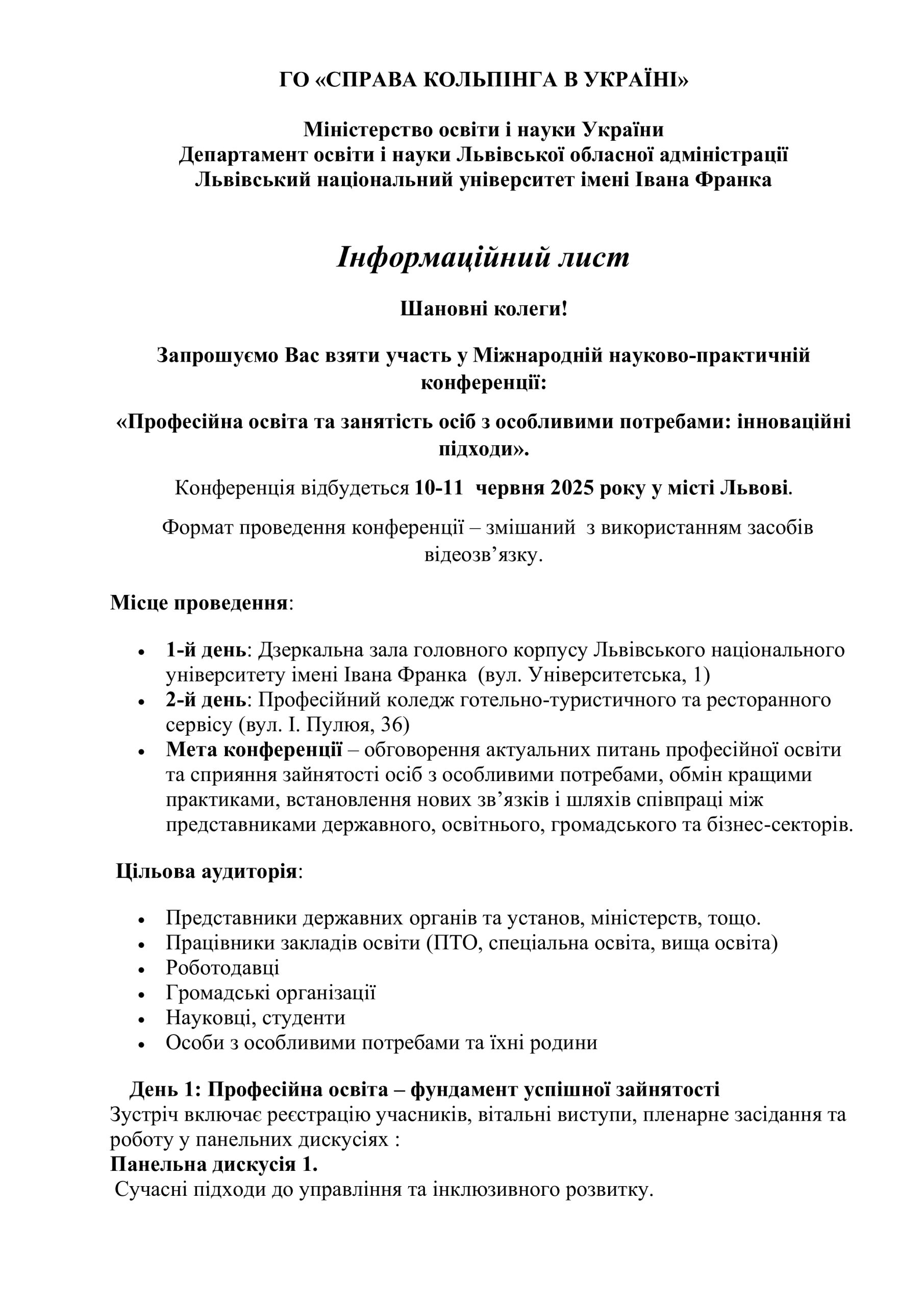 Запрошуємо освітян, науковців, роботодавців, представників громадських організацій, державного сектору, а також осіб з особливими потребами та їхні родини на міжнародну науково-практичну конференцію: